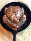 Braised chicken thighs, red pepper, onion, black beans, rice, bacon.